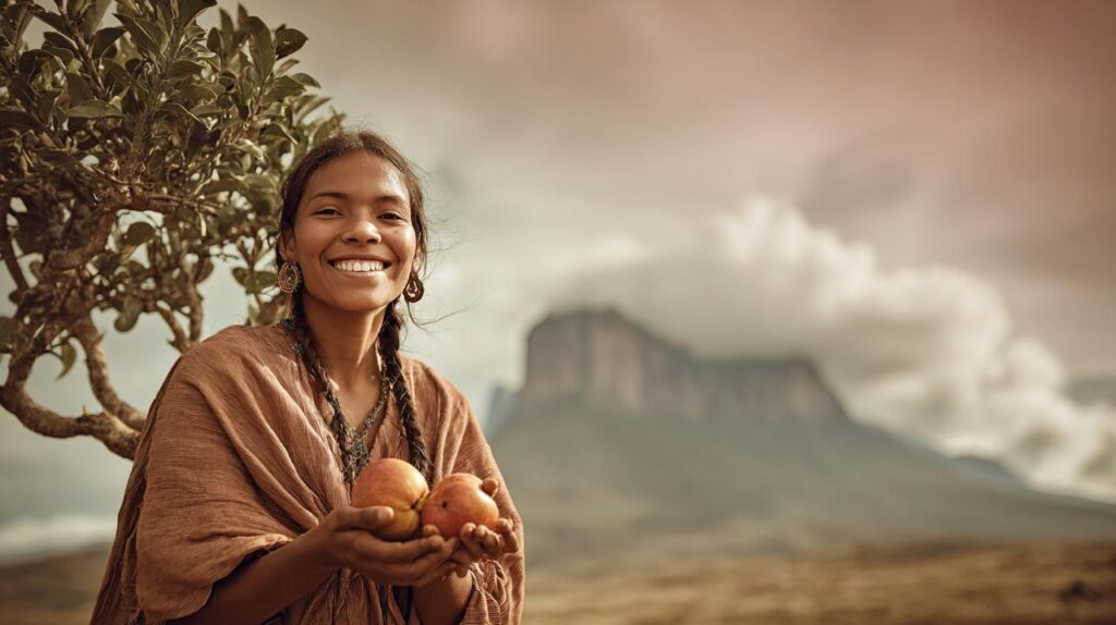 La mitología Piaroa también cuenta que el Autana, el majestuoso árbol de la vida, se alzaba tan alto que su cima tocaba el infinito, y sus ramas, llenas de frutos, caían para dar vida y formar la Amazonía. El cerro Autana es visto como las raíces de este árbol sagrado que quedaron como una huella del pasado, un símbolo de la conexión entre el mundo terrenal y el plano espiritual. Los indígenas de esta zona, no solo creen en un Dios creador de la naturaleza, sino que la naturaleza misma es la manifestación de lo divino, y en su contacto directo con ella se encuentra la verdadera espiritualidad.